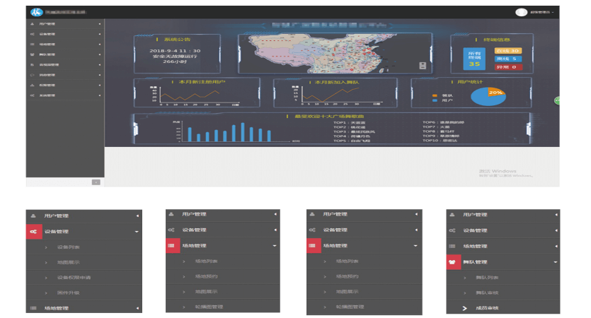 “智慧廣場舞系統(tǒng)”是由前端應(yīng)用系統(tǒng)及后臺管理系統(tǒng)組成,前端應(yīng)用系統(tǒng)是供健身群眾使用,可進(jìn)行健身指導(dǎo),預(yù)約場地、上傳音樂、活動參與等﹔領(lǐng)隊擁有組建隊伍、隊員審核等權(quán)限,整個管理系統(tǒng)采用微信小程序的形式,簡單易用,輕松上手。